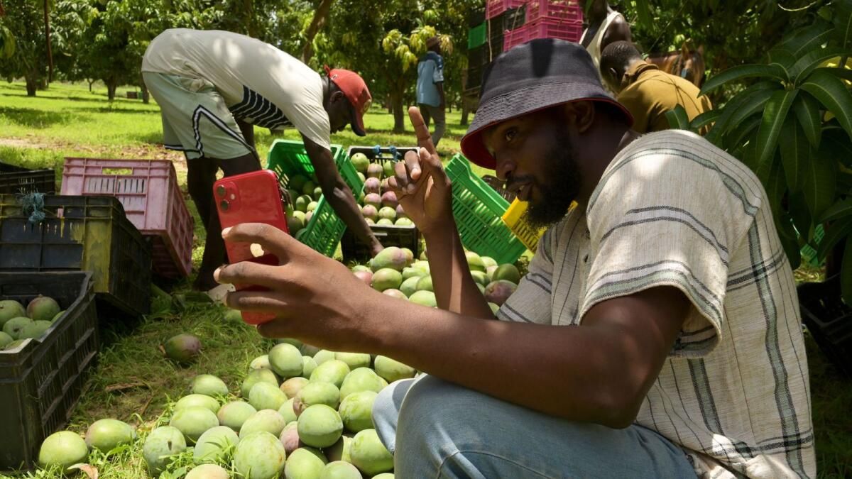 Bir yığın taze mangonun yanına çömelmiş Senegalli çiftçi Mame Abdou Diop, gelişen sosyal medya takipçileriyle hit olacağını umarak bir TikTok klibi çekiyor.