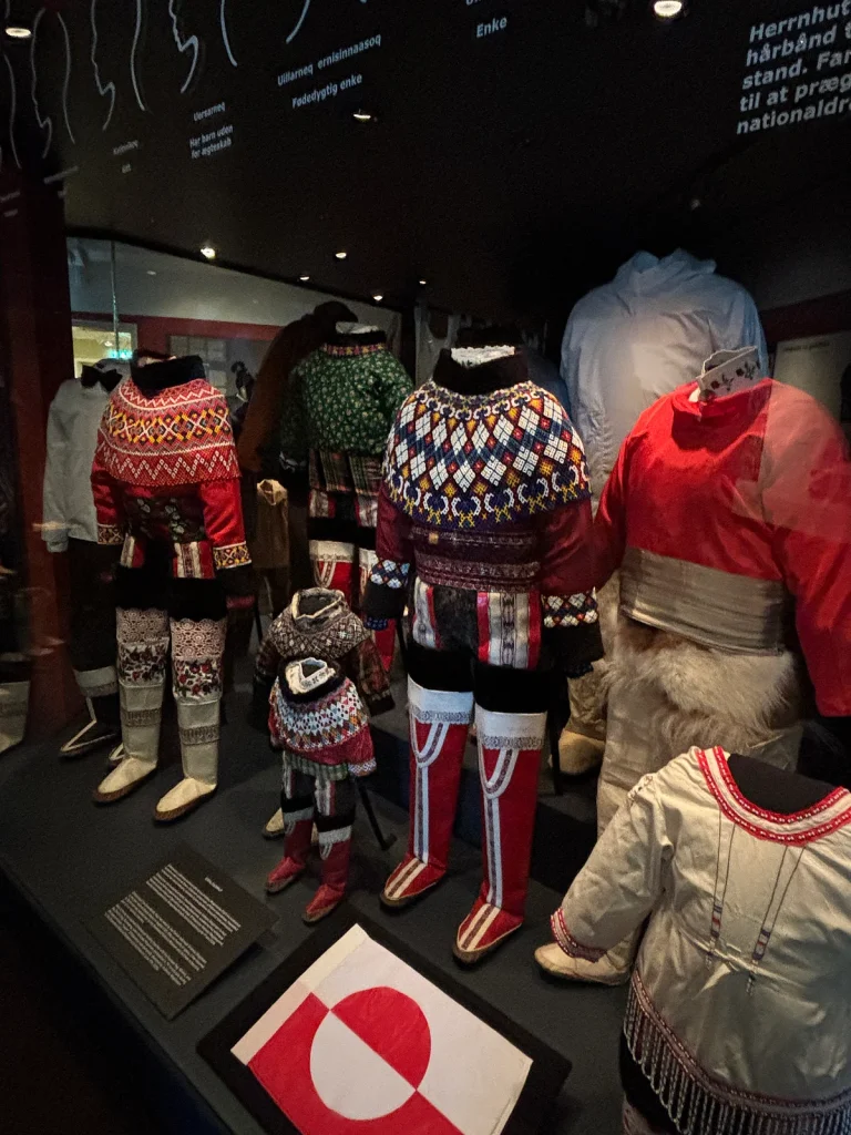 Bir dizi tarihi sahil deposunda yer alan & nbsp; güzel& nbsp;küratörlüğünde Ulusal& nbsp;Müzesi & nbsp;, sabahın en önemli noktasıydı. Kuzey Kutbu’ndan& nbsp; eserler& nbsp;tuttu ve& nbsp;Grönland’ın & nbsp; yerli geçmişine bir bakış attı. Müzenin dışında devasa dökme demir kaplar ve bir zamanlar balina yağı çıkarmak için kullanılan makineler vardı. İçeride, geleneksel olarak kemik, dalgaların karaya attığı odun veya boynuzlardan oluşturulan küçük oyma figürler olan tupilakları sergileyen raflar gördük. Bugün hediyelik eşya olarak satılıyorlar, ancak geçmişte tupilaklar güçlü manevi nesnelerdi.