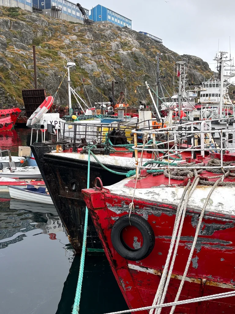 Kurtarıcımızın ahşap, kırmızı boyalı Kilisesinin durduğu bir başkentten çok bir balıkçı köyü gibi hisseden Eski Nuuk’a, tussock çimleri ve buz gibi akarsulardan kıyıya yürüdük.& nbsp; ile & nbsp; & nbsp; & nbsp;& nbsp; ;bir saat& nbsp;kulesi. Bir sıra kano& nbsp;kıyıda& nbsp; duruyordu.Ulu, ” Bunlar, halkımızın burada 4.000 yıldan fazla bir süredir hayatta kalmasını sağladı ve eskiden dalgaların karaya attığı odunlardan yapılırdı ve çocukken kaymayı öğreniriz” dedi.