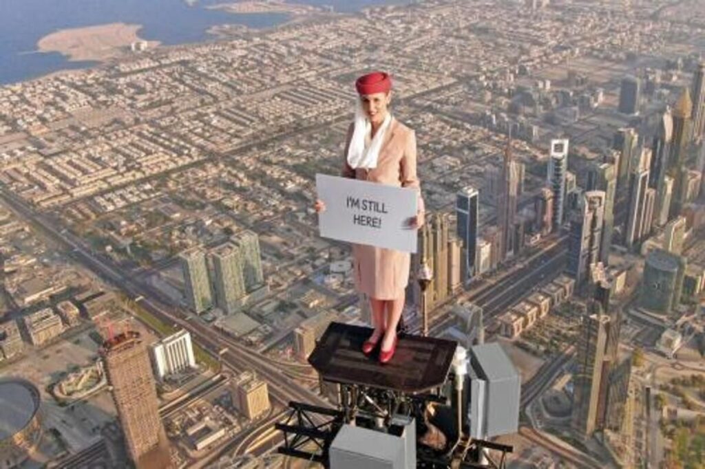 Viral hale gelen bir Emirates Havayolları reklam kampanyasında dublör Nicole Smith-Ludvik, Burç Halife’nin tepesinde durdu ve bunu yapan tek kadın oldu. “Hala buradayım” yazan pankartlarla göründü, hayranlık uyandırdı ve kampanyaya ve Dubai’nin unutulmaz silüetine dünya çapında dikkat çekti.