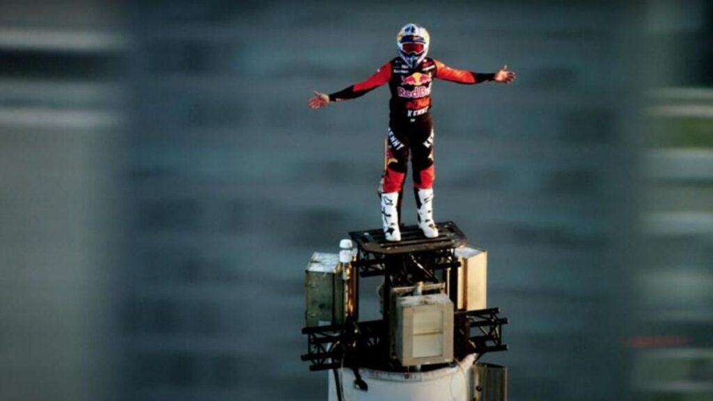 İngiliz motokros şampiyonu Sam Sunderland, Dubai Turizm ve Red Bull ile kısa bir film için Burç Halife’ye yükseldi. Tam sürüş donanımıyla kaplı Sunderland, zirveye metal bir merdivenle tırmanarak unutulmaz bir tanıtım parçası yarattı.
