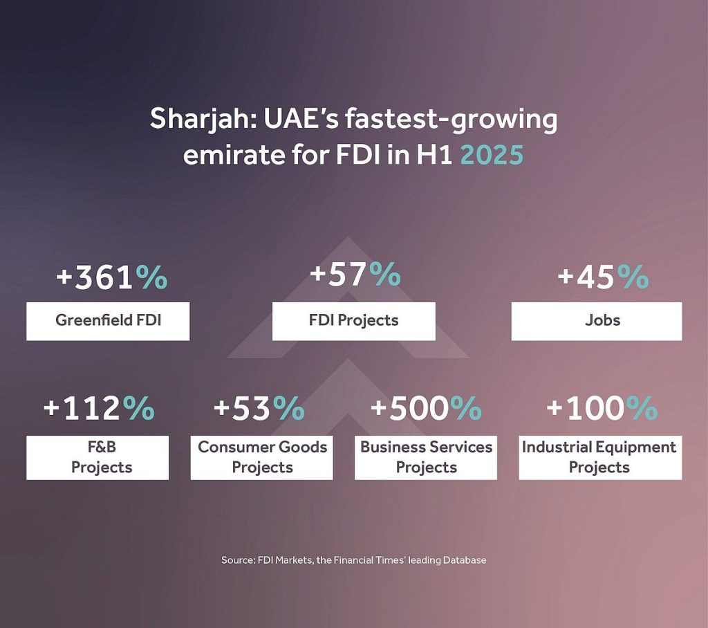 Sharjah, 2025’in ilk yarısında geçen yılın aynı dönemine göre 325 milyon dolardan rekor düzeyde 1,5 milyar dolarlık doğrudan yabancı yatırım (DYY) çekti. Sharjah’a Yatırım (Sharjah’ın DYY ofisi) Pazartesi günü yaptığı açıklamada, bunun BAE’deki tüm emirlikler arasında en güçlü performansa işaret eden sermaye yatırımlarında yüzde 361’lik bir büyümeyi temsil ettiğini duyurdu.