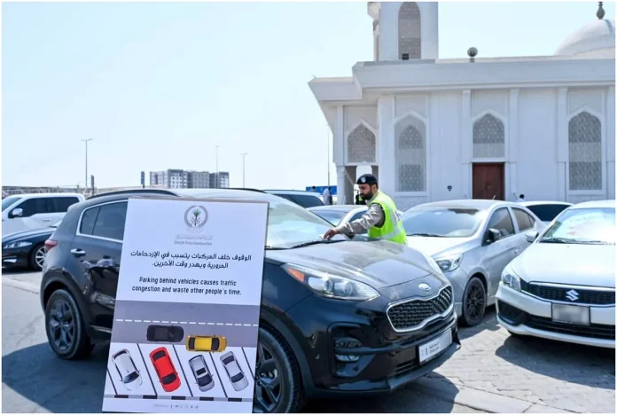 Sharjah Polisinin, ihlal eden araçlara uyarı broşürleri dağıtarak, “Diğer araçların arkasına park etmek trafik sıkışıklığına neden oluyor ve başkalarının zamanını boşa harcıyor” mesajını vererek bu tür davranışları ele almak için eğitici bir yaklaşım benimsediğine dikkat çekti.”