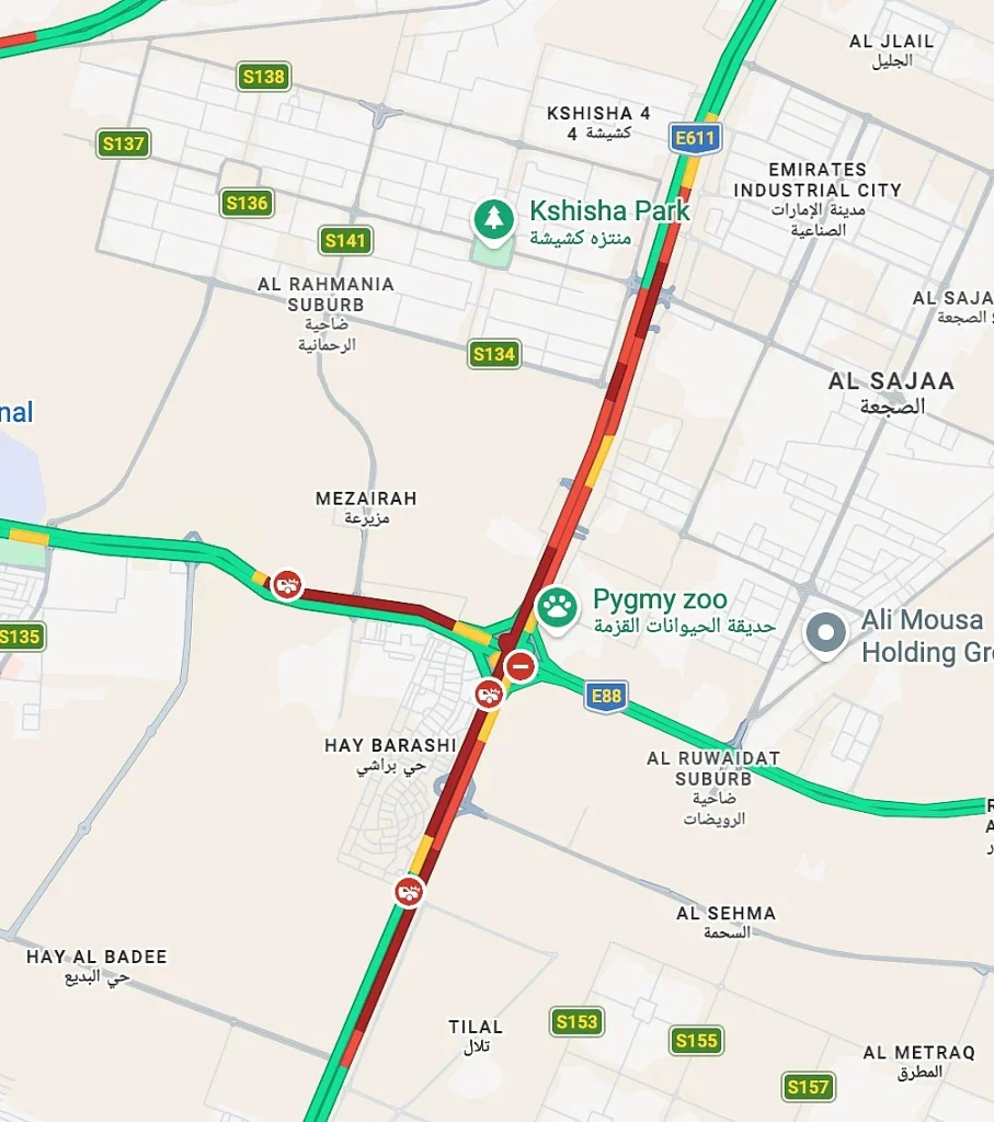 Kaza, Badaa Köprüsü’ne doğru 7 numaralı köprüden E611’de “trafiği engelliyor”.