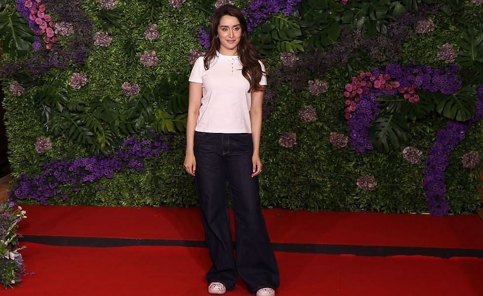 Shraddha, lacivert geniş bacaklı kot pantolonla eşleştirilmiş beyaz mürettebat yakalı bir tişörtle sade ve şık tuttu. Görünümü renkli katmanlı bir kolye, zarif küpeler ve spor ayakkabılarla tamamladı.