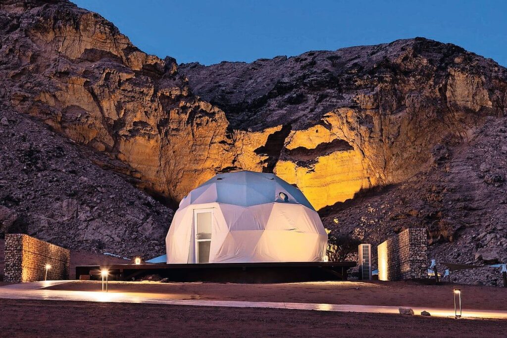 Ay İnzivası: Mleiha’daki bu büyüleyici destinasyon, özel bir deneyim için jeodezik kubbeler ve çadırlar içeren 79.900metrekareyi aşıyor. Ziyaretçiler çöl yürüyüşü ve bozulmamış yıldız gözlem fırsatlarının tadını çıkarabilirler.