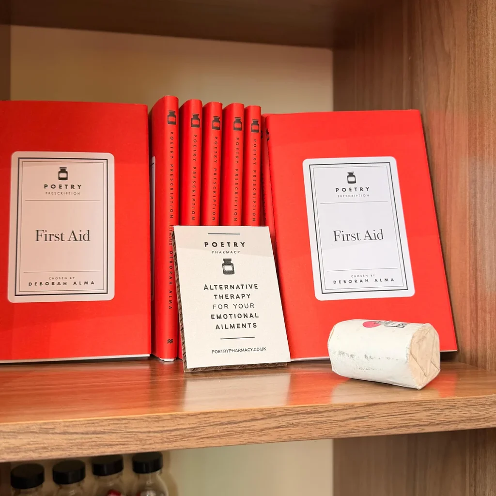 Genellikle “Acil Durum Şairi” olarak anılan bir şair ve editör olan Kurucu Deborah Alma, fikrin edebiyatın terapi gibi çalışabileceği inancından doğduğunu söylüyor. sıbf’de konuşan ”Birleşik Krallık’ta kitapçılarımız duygusal duruma göre bölünüyor” dedi. “İhtiyacınız olana göre alışveriş yapıyorsunuz. Burada gördüğünüz hap şişelerindeki şiirler, her kapsülde duygularınıza uyan bir ayet içeren bir parşömen var.”