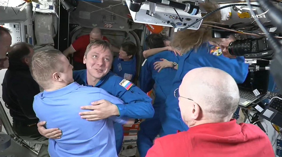 Astronotlar, SpaceX Crew Dragon’un 0545 gmt’ye gelmesinden kısa bir süre sonra uzay istasyonunda sıfır yerçekimindeki meslektaşlarını kucaklayan ve kucaklayan canlı TV’de gösterildi.
