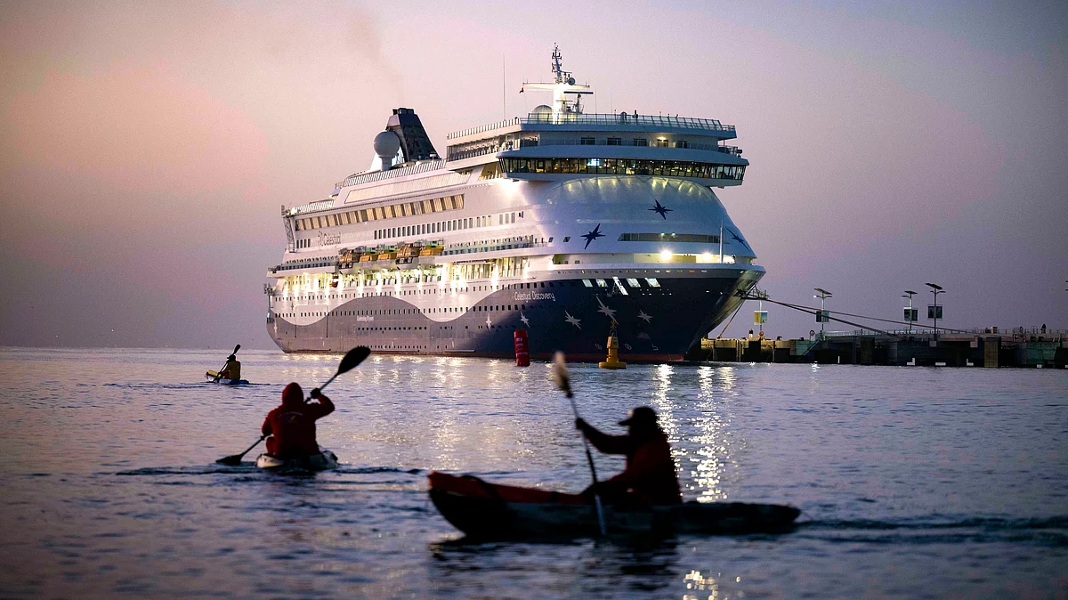 İlk bakışta klasik her şey dahil bir tatil gibi görünüyor. Çocuklar çatı havuzunda oynar, konuklar şezlonglarda uyur ve gün boyunca eğlence sağlanır. Bununla birlikte, biraz daha yakından baktığınızda, güvertede tur atan profesyonel triatletlerin, bisiklet kontrolleri yapan mekaniklerin ve gözlerinin köşesinden yunuslara bakarken yüzme antrenman makinelerinde vuruşlarını mükemmelleştiren sporcuların farkına varacaksınız.
