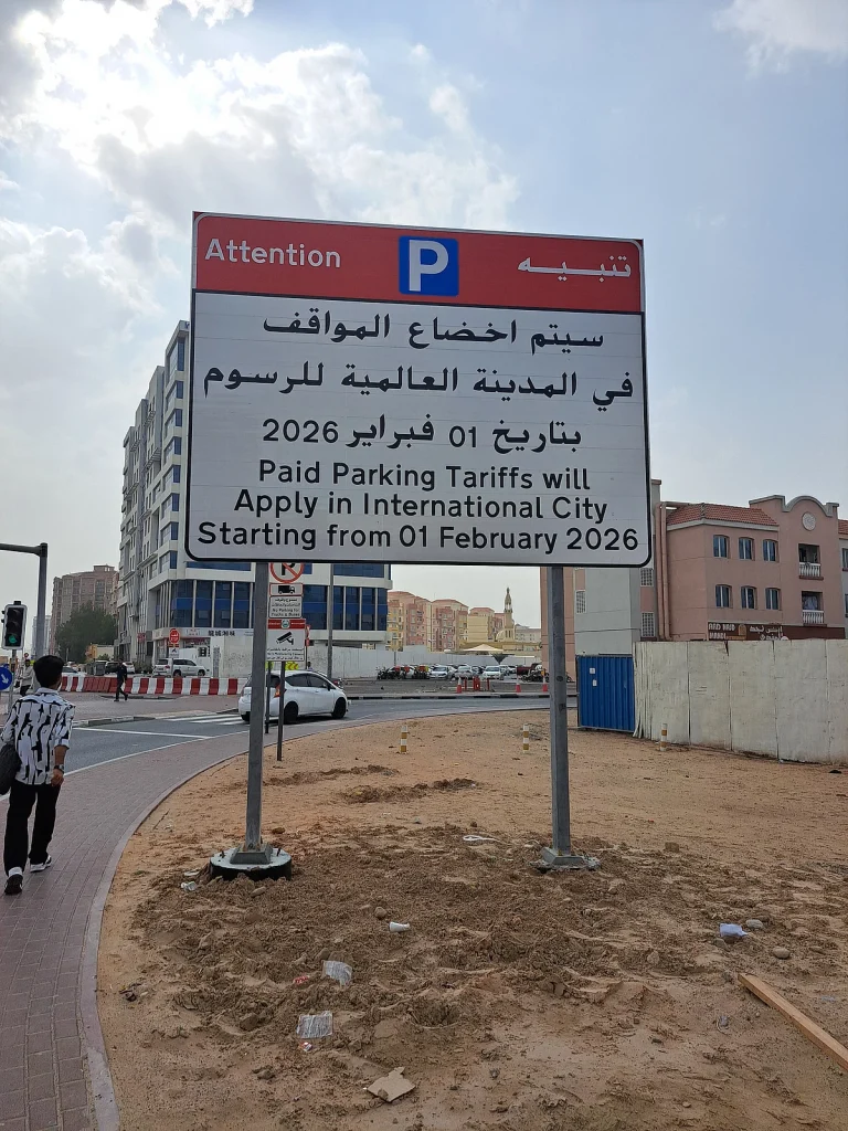 International City’deki yetkililer tarafından görüntülenen bir bildirime göre, International City’de 1 Şubat 2026’dan itibaren ücretli otopark tarifeleri uygulanacak.