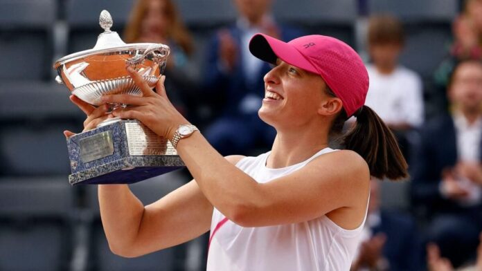 Iga Swiatek, Cumartesi günü üçüncü İtalya Açık şampiyonluğunu kazanmak için Aryna Sabalenka’yı 6-2 6-3 yendi ve bu ayın başlarında Madrid Açık zaferinin ardından kadınlar sıralamasında ilk ikisi arasındaki bir savaşta bir kez daha zirveye çıktı.Bu unvan, Swiatek’in kariyerinin 21’incisiydi, çünkü dünyanın bir numarası, üç kez şampiyon olduğu bu ayki Fransa Açık öncesinde rakiplerine bir uyarı verdi.Swiatek, Belarus’un maça tek taraflı bir başlangıçta 12 zorlanmamış hatayı kabul ettiği ilk sette Sabalenka’yı iki kez kırdı. Sabalenka, ikincisinde 2-0 öne geçmek için beş mola noktasına ulaşarak karşılık verdi, ancak Swiatek kendi servisini elinde tuttu.