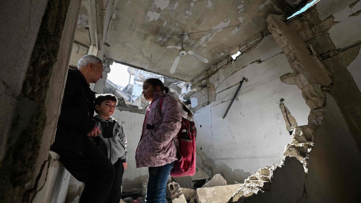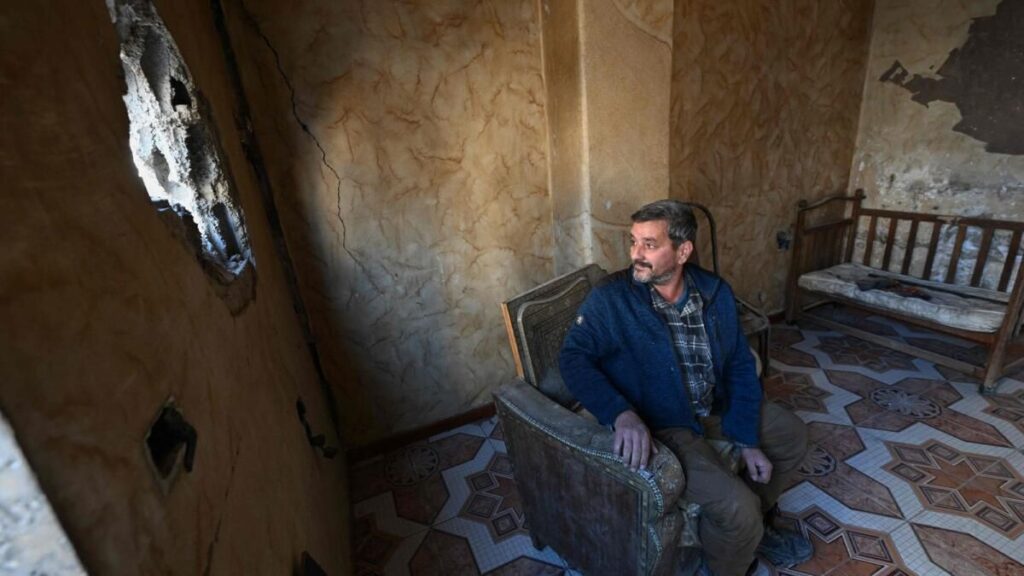Ömer Kafozi, 14 Ocak 2025’te Şam yakınlarındaki Hammuriye’deki evinde oturuyorKafozi, Baraa hasarı ilk gördüğünde şöyle dedi: “sadece baktı ve dedi ki, ‘bu yıkılmış evimiz nedir? Neden geldik? Geri dönelim.'”“Ona söyledim, burası bizim evimiz, oraya geri dönmeliyiz” dedi.Hammuriye’ye dönene kadar ailesi kuzeybatıya sığındı ve Suriye ve komşu Türkiye’yi vuran 2023 depreminden sağ kurtuldu.Evinin zarar görmesine rağmen Kafozi, “Geri döndüğüm için pişman değilim.”Dışarıda çocuklar tozlu sokakta oynarken, bir kamyon gaz şişelerini teslim etti ve insanlar bisikletle geçti.Yan tarafta, Kafozi’nin yeğeni 40 yaşındaki Ahmed de karısı ve dört çocuğuyla birlikte geri döndü, ancak evlerinin zarar görmesi nedeniyle akrabalarının yanında kalıyorlar.Bir yatak odasının kabuğundan, gündüz işçisi bombalanarak buruşuk ve parçalanmış binaların kasvetli manzarasına baktı.“Umudumuz, ülkede yeniden yapılanma olması” dedi.“Bireysel bir çabanın buna dayanabileceğini sanmıyorum, bu çok büyük, ülkedeki zarar büyük.”Suriye’nin 13 yıllık savaşı 500.000’den fazla insanı öldürdü, milyonları daha fazla yerinden etti ve ülkenin altyapısını ve endüstrisini tahrip etti.46 yaşındaki yerel yetkili Baybars Zein, Hammuriye’den yerlerinden edilen insanlar için otobüs taşımacılığının düzenlendiğini söyledi.Minaresi zarar görmüş bir caminin yakınında, “Yaklaşık 106 aile aldık — geri dönmek isteyen toplam aile sayısı 2.000 civarında” dedi.