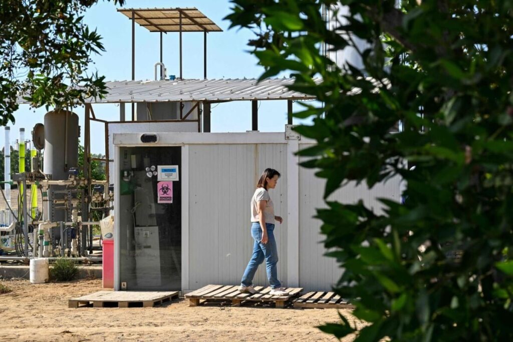 Kral Abdullah Bilim ve Teknoloji Üniversitesi çevre bilimi ve mühendisliği akademisyeni Peiying Hong, 21 Kasım 2024 tarihinde Suudi Arabistan'ın Kızıldeniz kıyısındaki Cidde yakınlarındaki çölde bulunan ve üniversite tarafından geliştirilen bir atık su arıtma tesisinde yürüyor. — AFP