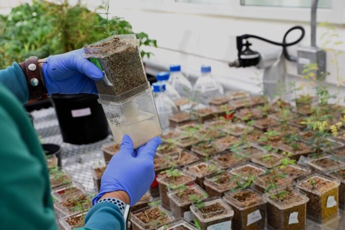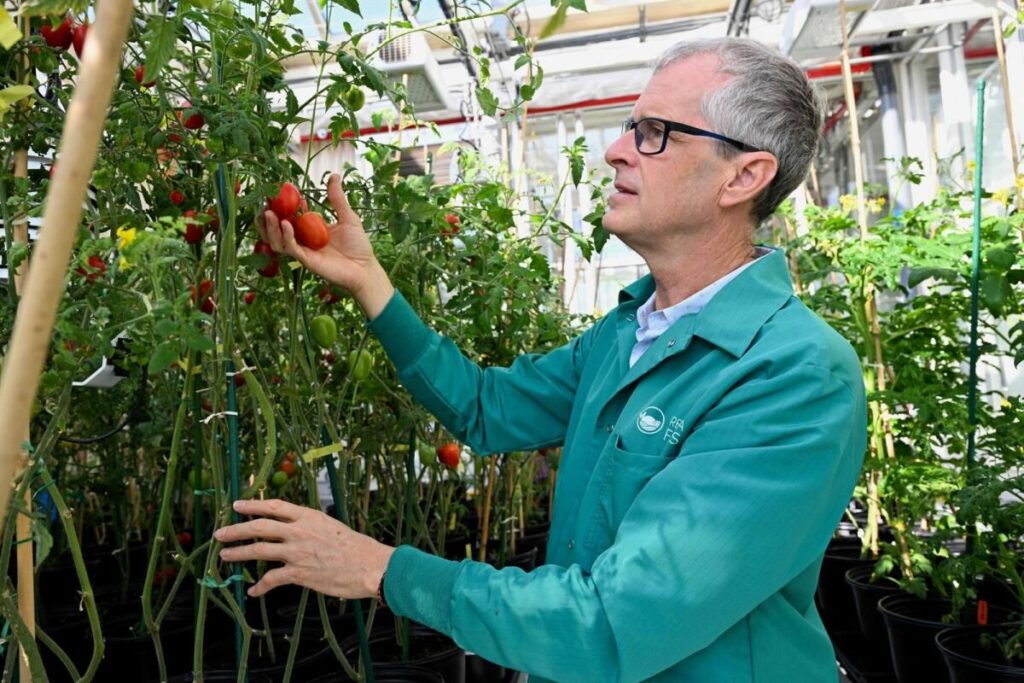 Kral Abdullah Bilim ve Teknoloji Üniversitesi’nde profesör, 21 Kasım 2023’te Kızıldeniz Cidde Valiliği’ndeki Thuwal kampüsünün dışındaki deneysel bir çiftlikteki bitkileri inceliyor