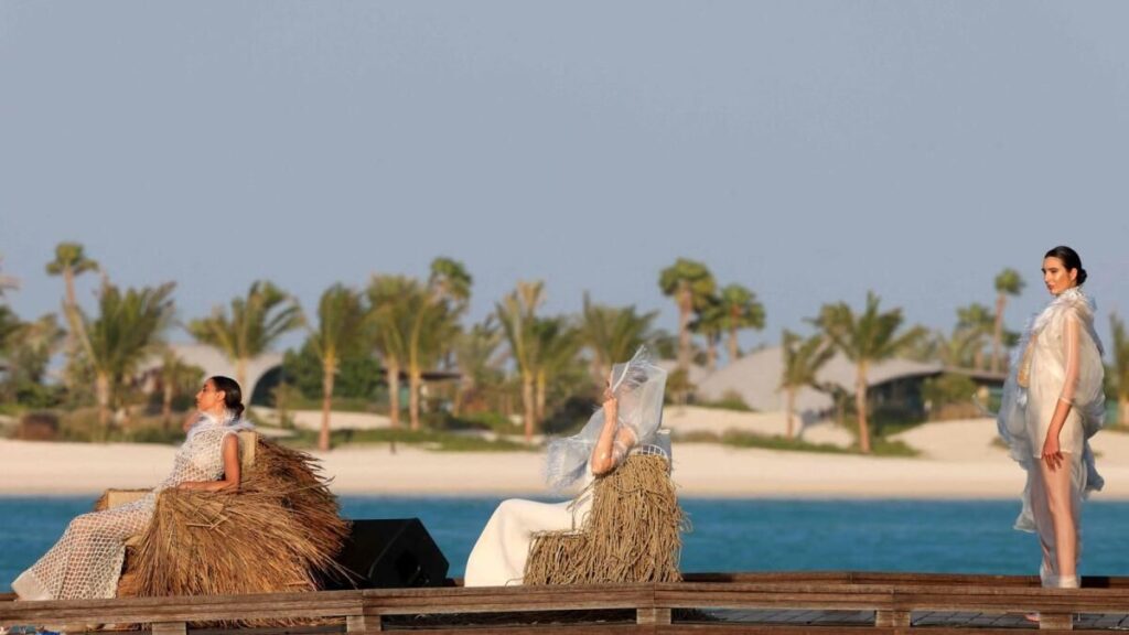 Modeller Suudi tasarımcı Tima Abid’in kreasyonlarını sunuyor‘Çok yeni bir şey’Suudi Arabistan’ın batı kıyısındaki Ummahat Alshaikh Adası’ndaki St Regis Kızıldeniz Tesisi olan Kızıldeniz Moda Haftası ortamına yalnızca kiralık tekne veya deniz uçağı ile erişilebilir.Suudi Arabistan’ın Veliaht Prens Muhammed bin Selman tarafından denetlenen Vizyon 2030 sosyal ve ekonomik reform programının merkezinde yer alan giga projelerinden biri olan Kızıldeniz Global’in bir parçasıdır.Kızıldeniz’in Küresel stresine dahil olan yetkililer, NEOM olarak bilinen planlı fütüristik bir mega şehir olan en önde gelen giga projesinin uygulanabilirliği konusunda şüpheler arttıkça ilerleme kaydediyorlar, geçen yıl iki tatil yeri açıyorlar ve gelecek yıl sonuna kadar 14 otel daha açmaya hazırlanıyorlar.Eskiden kapalı olan Suudi Arabistan, 2019’da genel turizm vizesine girdiğinden beri, güneydeki dağları sergileyen ve 2029’da Neom’un Trojena olarak bilinen bir bölgesinde Asya Kış Oyunları için ev sahipliği haklarını güvence altına alan dev bir çöl olduğu fikrini ortadan kaldırmaya çalıştı.Suudi Moda Komisyonu genel müdürü Burak Çakmak, plaj gelişmelerinin önemli potansiyel cazibe merkezleri olarak görüldüğünü ve Kızıldeniz Moda Haftası’nın kısmen halihazırda mevcut olanı vurgulamayı amaçladığını söyledi.“Açıkçası lojistik olarak çok yeni bir şey deniyoruz. Tekneyle yarım saat süren uzak bir adadayız… Burada gösteri yapabilmenin birçok sınırlaması var “dedi.