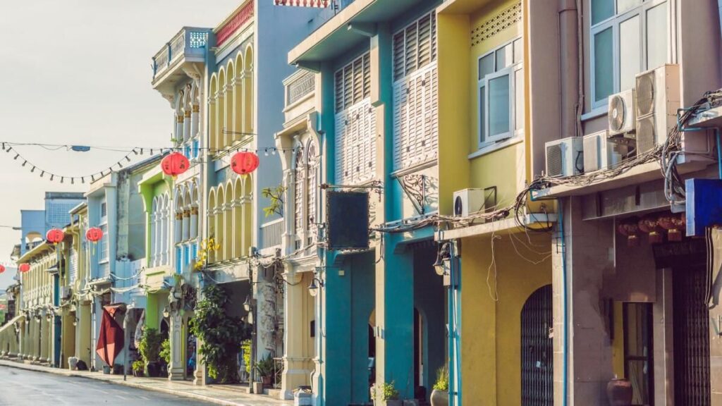 Phuket kasabasında Portekiz tarzı Roman sokağı. Çin Mahallesi veya eski şehir olarak da adlandırılırPhuket’in başkentinin en eski kısmının renkli, masalsı sokaklarını keşfetmek gezinin belki de en unutulmaz kısmıydı. Çiçekler, fenerler, kiraz kuşları ve şirin balkonlarla süslenmiş ve her türlü havalı kafeye, butiğe, organik yiyecek tezgahına, şık barlara, ikinci el kitapçılara ve daha fazlasına ev sahipliği yapan Avrupa tarzı art deco benzeri mimari, şehrin tarihini yansıtıyor. Avrupa’dan gelen gezginler için önemli bir ticaret noktası olarak, Hindistan, Çin ve ötesi. Pazar gecesi pazarı, tesadüfen Abu Dabi’deki Yas Mall’da ikinci bir şube açan Phuket doğumlu bir marka olan Tiktok’un ünlü Phuketique burnt butter tostundan bir dilim örneklemek gibi özellikle kaçırılmayacak bir şey.