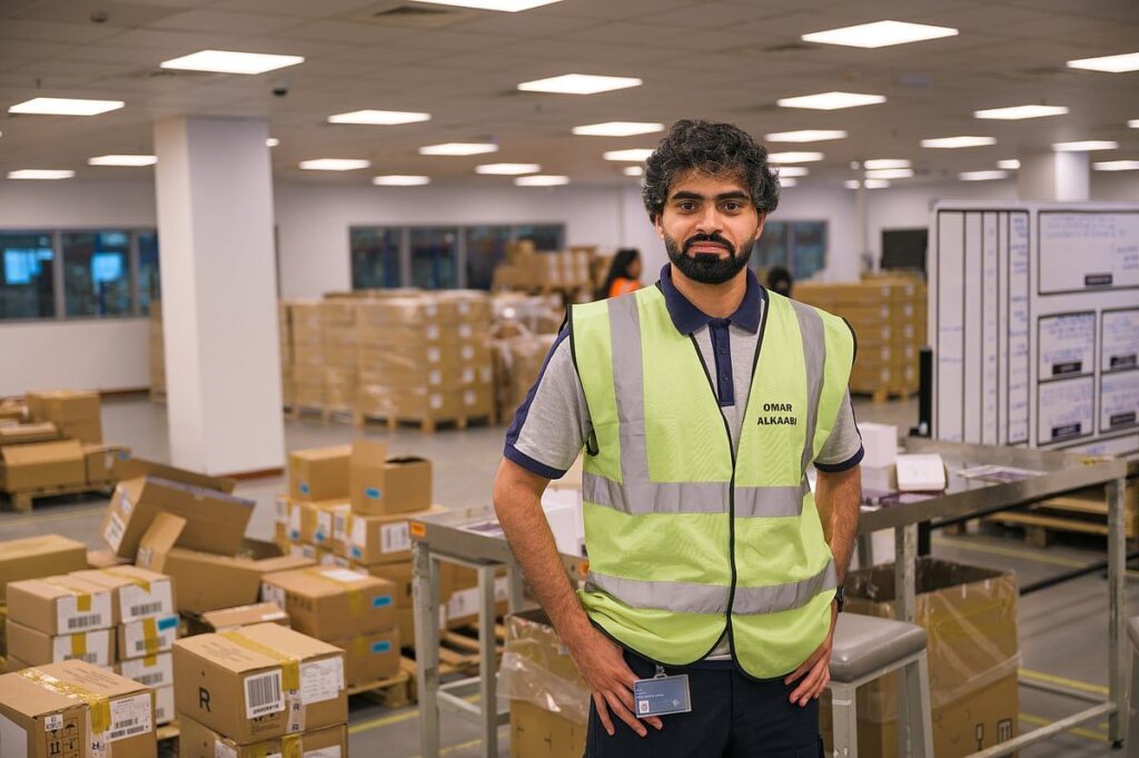 Çalışkanlar arasında Ajman’lı 23 yaşındaki Emirlik Omar Alkaabi de var. Şafaktan önce uyanır, Fajr’a dua eder ve işe gitmek için her yöne bir saat sürer. “Buradaki takımı seviyorum,” diye gülümseyerek imzaladı. “Çok fazla millet var ve hepimiz bir olarak çalışıyoruz. Ayrımcılık yok.” Omar kutulara barkod uygular, taramayı kontrol eder ve öğelerin sisteme doğru şekilde kaydedilmesini sağlar. “Her şey dağıtım merkezine aktarılmalı ve sunucuya yüklenmelidir” diye açıkladı. “Bir devlet lisesinde okudum ve sağır olmama rağmen tamamen bağımsızdım — gölge öğretmene ihtiyacım yoktu.”