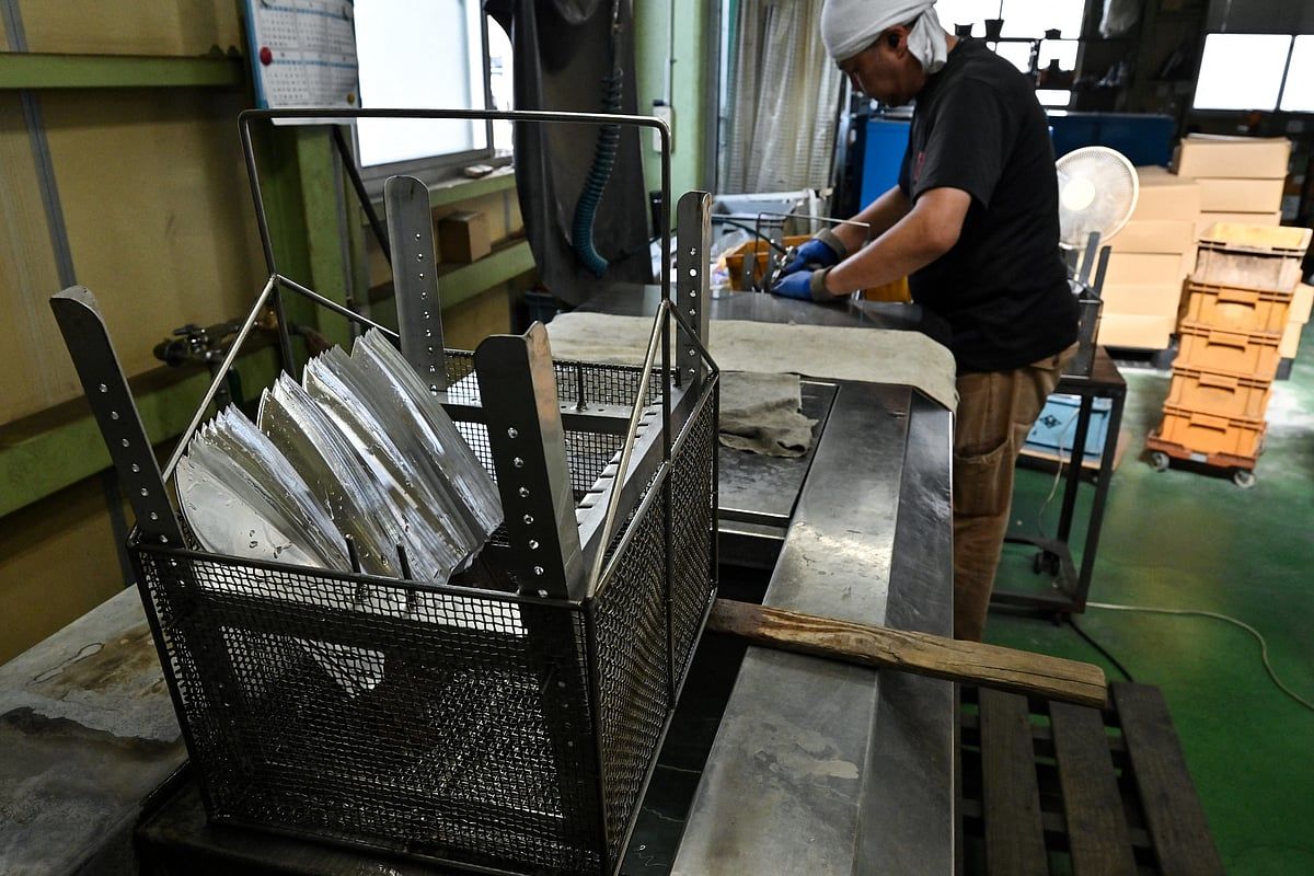 Yaklaşık 30 işçisi olan Sumikama Çatal Bıçak Takımı, bıçakları yapmak için milimetrenin binde birine kadar doğruluğu garanti eden makineler kullanıyor, ardından zanaatkarlar işi elle bitiriyor.