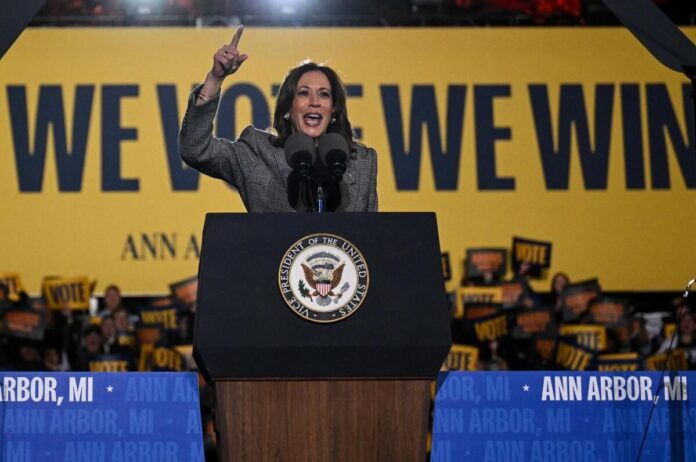 Pazartesi akşamı Harris, Ann Arbor, Michigan’da koşan arkadaşı Minnesota Valisi Tim Walz ile şarkıcı-söz yazarı Maggie Rogers’ın performansının yer aldığı bir mitinge katıldı.