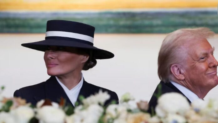 Melania Trump geniş kenarlı, kayıkçı tarzı bir şapka ve kruvaze lacivert orta uzunlukta bir ceket giyerken, bazıları kasıtlı olarak kocasından uzak durmaya çalışıp çalışmadığını sorguladı. Donald Trump karısının yanağını öpmek için eğildiğinde, şapka o anın önüne geldi (kelimenin tam anlamıyla).