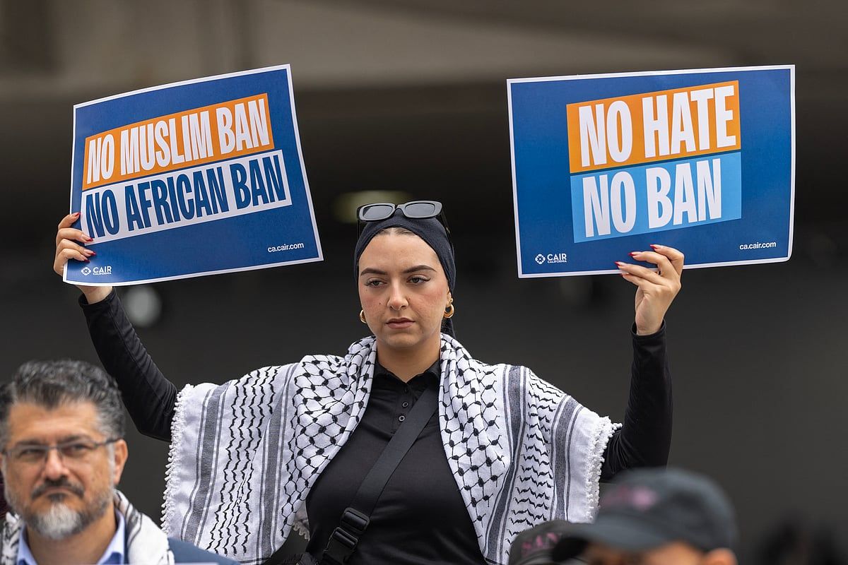 Trump, göreve başladığı ilk dönemde, 2018’de Yüksek Mahkeme tarafından onaylanmadan önce birkaç kez tekrarlanan bir politika olan yedi Müslüman çoğunluklu ülkeden gelen yolcuları yasakladığını duyurdu.