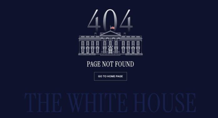 Bu hafta itibariyle ziyaretçiler whitehouse.gov/es şimdi Beyaz Saray resminin altında bir hata mesajı ve “sayfa bulunamadı” kelimeleri görün.