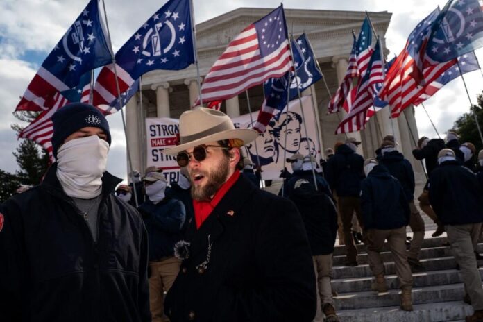 Liderleri Thomas Rousseau – yüzlerini örten beyaz bandanaları olan iki adamla çevrili – afp’ye “Amerikan aile biriminin iadesi” de dahil olmak üzere “vatansever ilkelere” inandığını söyledi.