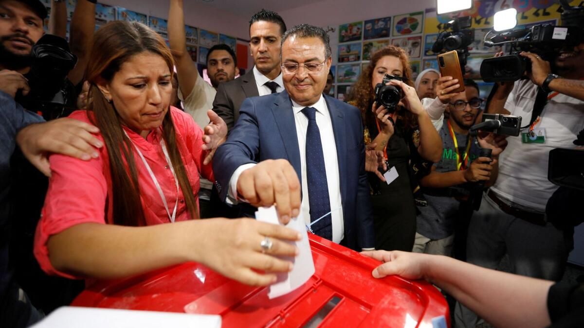 Pazar günkü seçim çukurları iki rakibe karşı çıktı: eski müttefiki eleştirmen oldu, Chaab Partisi lideri Zouhair Maghzaoui ve geçen ay hapse atılana kadar Saied için büyük bir tehdit oluşturduğu görülen Ayachi Zammel.