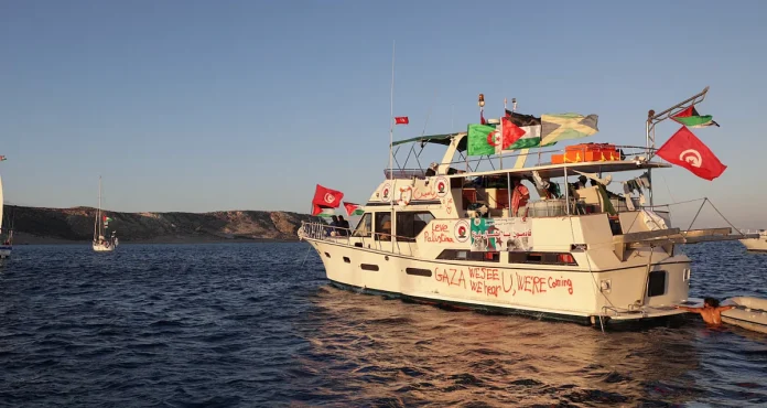 Filo organizatörleri, gemilerin uluslararası suları geçmesinden bu yana İsrail’in müdahalelerinin “yasadışı” olduğunu söylediler.