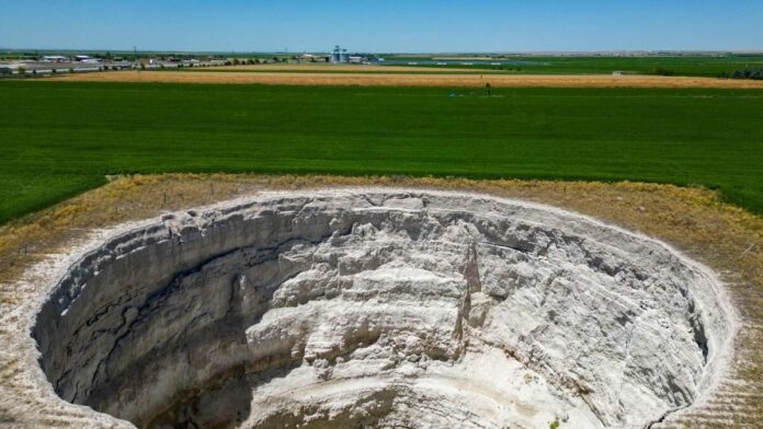 “Ayağım aniden kaydı… Aşağıya baktım ve yerde çatlaklar gördüm, “dedi 24 dönümlük çiftliğinde her biri yaklaşık 164 fit genişliğinde iki çukuru olan 57 yaşındaki çiftçi.