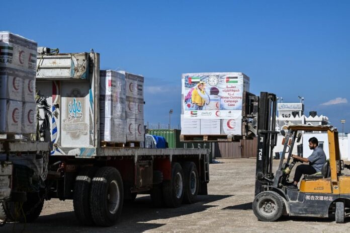 Çeşitli insani yardım yüklü üç BAE konvoyu bu hafta Mısır Refah Sınır Kapısından Gazze Şeridi’ne geçti.Bu, BAE’nin “Şövalye Şövalyesi 3 Operasyonu” doğrultusunda mevcut koşullar altında Filistinlilere destek ve yardım sağlama çabalarının bir parçasıdır.Konvoylar, 364 tondan fazla insani yardım taşıyan 29 kamyondan oluşuyor. Buna yiyecek, kışlık giysiler, barınak çadırları ve diğer temel ihtiyaçlar dahildir.Bu, Şövalye Şövalye 3 Operasyonu kapsamında Mısır sınır kapılarından Gazze Şeridi’ne giren yardım konvoylarının sayısını, 29.025 tondan fazla nakliye yapan 2.319 kamyondan oluşan 150 konvoya getiriyor.