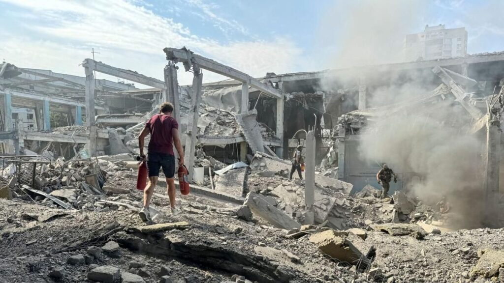 Rusya'nın Pazar günü Kharkiv& apos;de Ukrayna'ya düzenlediği saldırının ortasında bir adam Rus füze saldırısı sahasında yangın söndürücü taşıyorAyrıca ABD ve diğer müttefiklere, Rusya içinde daha fazla hasar vermek ve Moskova’nın Ukrayna’ya saldırma yeteneklerini zayıflatmak için daha güçlü Batı kaynaklı silahlar kullanma izni için baskı yapıyor.Zelenskiy, Telgraf kanalında yaptığı açıklamada, yetkililerin en az 10 füze içerdiğini ve bir alışveriş merkezi de dahil olmak üzere yerleri vurduğunu söylediği Kharkiv saldırısına yanıt olarak “Kurtarma operasyonu için gerekli tüm güçler getirildi” dedi.“Ve bu terörü durdurmak için dünyanın gerekli tüm güçleri getirilmelidir. Bu olağanüstü güçler gerektirmez, ancak liderler adına yeterli cesaret gerektirir – Ukrayna’ya kendini savunması için gerekenleri verme cesareti.”Kharkiv’de kurtarma ekipleri ve gönüllüler, füzelerin alışveriş merkezine ve bir etkinlik salonuna çarpmasının ardından yaralı sivilleri ambulanslara taşıdı. Paramparça cam ve enkaz yere saçıldı ve insanlar güvenlik için bir metro istasyonuna kaçtı.Daha önce Rus yetkililer, hava savunma birimlerinin bir gecede Ukrayna tarafından fırlatılan 158 uçağı imha ettiğini ve enkazın Moskova Petrol Rafinerisinde ve komşu Tver bölgesindeki Konakovo Elektrik Santralinde yangına neden olduğunu söyledi.Reuters, Rusya’ya veya Ukrayna’daki savaş alanından drone saldırılarının raporlarını bağımsız olarak doğrulayamadı ve Kiev henüz yorum yapmadı. Rusya, Ukrayna’nın hava saldırılarının verdiği zararın tamamını nadiren açıklıyor.Ukrayna’nın baş komutanı Oleksandr Syrskyi, Rusya’nın Ukrayna’nın doğusundaki ana saldırı hattı etrafındaki durumun “zor” olduğunu söyledi.