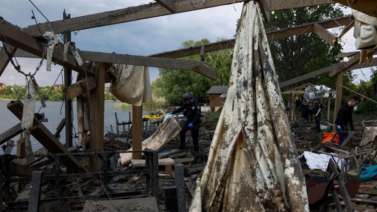 Polis memurları ve acil durum çalışanları, Kharkiv’de bir Rus füze saldırısının çarptığı bir tatil beldesini denetliyor. – ReutersKupiansk bölgesindeki iki köyde günün ilerleyen saatlerinde beş kişi daha öldü ve 9 kişi yaralandı. Yerel vali Oleh Syniehubov, Rus kuvvetlerinin ilçenin iki köyünü kendinden tahrikli çoklu roketatarla bombaladığını söyledi.Cumhurbaşkanı Volodymyr Zelensky, Batılı müttefikleri bir kez daha Kiev’e Kharkiv ve diğer şehirleri korumak için ek hava savunma sistemleri tedarik etmeye çağırdı.Zelensky Telgrafta “Dünya Rus terörünü durdurabilir — ve bunun için liderler arasındaki siyasi irade eksikliğinin üstesinden gelinmesi gerekiyor” dedi.Patriot füze savunma sistemlerine atıfta bulunarak, “Harkov için iki Vatansever temel bir fark yaratacak” dedi. Cumhurbaşkanı, diğer şehirler için hava savunma sistemlerinin ve cephedeki askerlere yeterli desteğin Rusya’nın yenilgisini sağlayacağını da sözlerine ekledi.