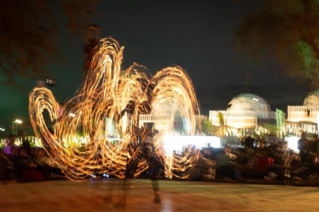 Güneş kum tepelerinin altına batarken, katılımcılar kutlamanın devam ettiği kampa geri döndüler. Rohit Bharati, temsilci saat 5: 00’de faaliyete başladı. Tannoura dansçılarının dönen sanatından göz kamaştırıcı ateş şovuna ve oryantal dansa. Faris Johar günün enerjisini mükemmel bir şekilde yakaladı: “Yemekler çarpıyordu, hava harikaydı ve sanatçılar inanılmazdı. Başka hiçbir şeye benzemeyen tam günlük bir macera.”