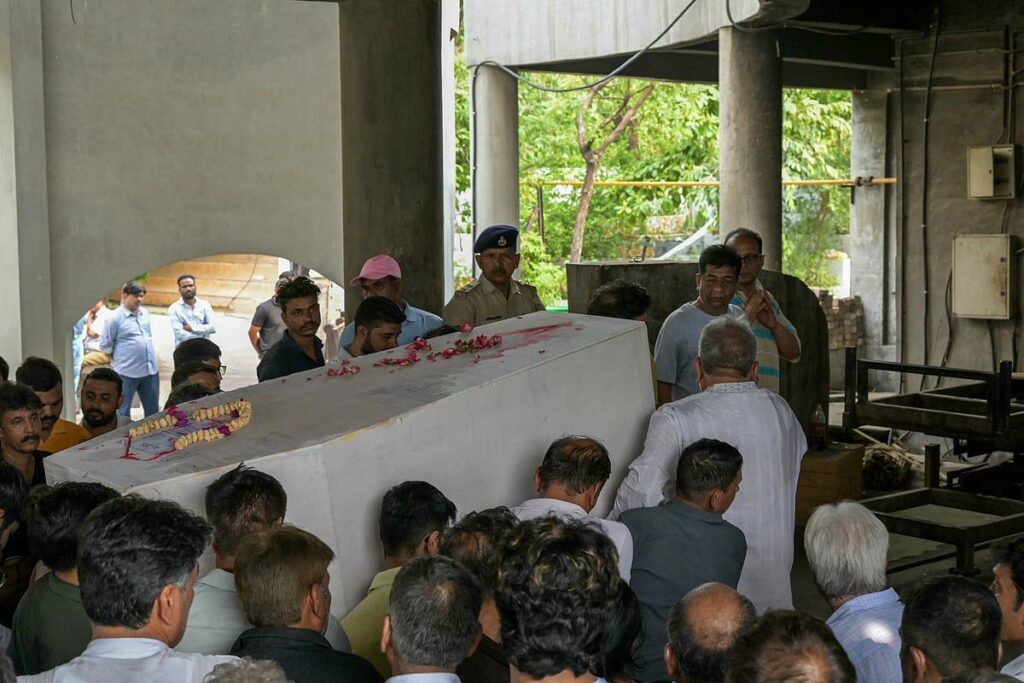 Bu arada Gandhinagar’da aileler, yerel sakinler ve polis yetkilileri, trajik kazada yan yana ölen Brahmbhatt ve Kalyani Brahmbhatt çiftinin son ayinlerini yaptılar.