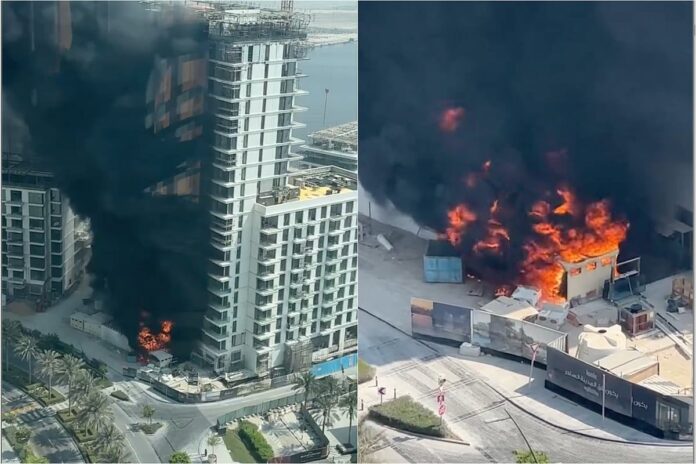 Olayı videoya çeken bir görgü tanığına göre, Salı günü saat 2: 54civarında Dubai Limanı’ndaki bir şantiyede yangın çıktı.