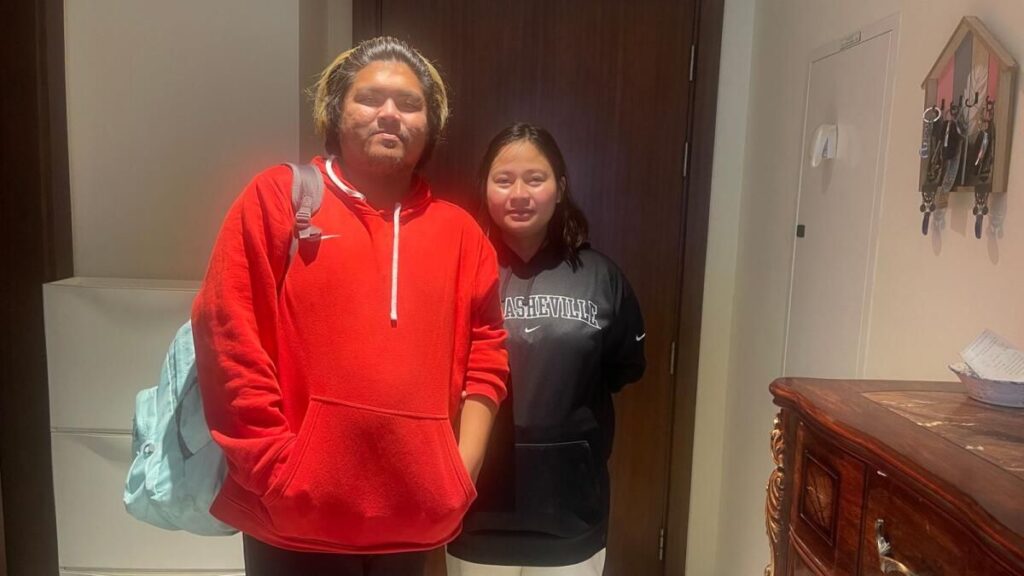 Bell ve Angel, Business Bay’de bir aile tarafından ağırlanan Wasim Baig, Muhammed Şerif ve Sandip ile birlikteAngel, “Zaten mahsur kalan diğer dört kişiyi barındırıyorlardı, ancak bizi kollarını açarak evlerinde karşıladılar” dedi. “Onların nezaketi hepimizi anında rahat hissettirdi. Geç saatlere rağmen bize yiyecek ve su ikram ettiler ve şilteler ayarlayarak gece boyunca konforumuzu sağladılar. Ve ertesi sabah sıcak bir kahvaltıya uyanmak gerçekten bir nimetti.”Ertesi sabah, grup bir fotoğraf için poz verirken Nepal’den Sandip ve Hindistan’dan Mohammad Shareef ve Wasim Baig, konaklamaya ulaşmak için birkaç kilometre yürümenin zorluklarını ayrıntılarıyla anlatarak yolculuklarını paylaştılar.