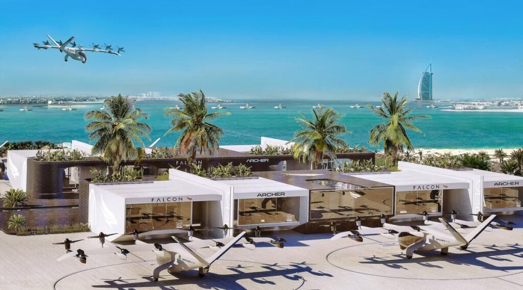 Nisan ayında Archer Aviation, Gece yarısı uçağını üretmek ve BAE’nin Başkentinde uluslararası merkezini kurmak için Abu Dabi’den milyonlarca dolarlık yatırım aldı. Yatırımlar ayrıca Abu Dabi’deki kritik noktalarda dikey limanlar inşa etmeyi ve Archer’ın BAE’de ticari hava taksi operasyonlarını başlatmasını hızlandırmayı amaçlıyordu.Archer’s Midnight, yolculuklar arasında minimum şarj süresiyle hızlı arka arkaya uçuşlar gerçekleştirmek için tasarlanmış, pilotlu, dört yolcu uçağıdır.Uçak yerden 500 ila 3.000 metre yüksekten uçacak. Goel, ”Uzak bölgelerde yaklaşık 500 metre uçacak ve kentsel alanlarda 3.000 ila 4.000 metreye kadar çıkabilecek” dedi.Uçan taksiler için güzergahlar hala havacılık otoriteleri tarafından ütülenmektedir, ancak bunların çoğu zaten helikopter güzergahları olarak tanımlanmıştır. Yetkili, “Bu güzergahlar, turistik bölgelerdeki bazı yüksek binaları aşmak için optimize edilecek” dedi.Hava taksileri mevcut helikopter aviyonikleri içinde faaliyet gösterecek. “Helikopterler için belirlenmiş olan şeritlerde kaldığımızdan emin olmak için Dubai hava trafik kontrolü ve Abu Dabi hava trafik kontrolü ile çalışıyoruz.