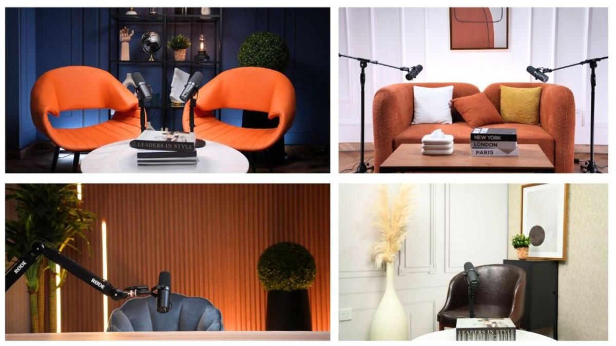 Stüdyolar, bir sonraki başyapıtınız için mükemmel bir zemin sağlayarak yaratıcılığı ve üretkenliği teşvik etmek için tasarlanmıştır. Profesyonellik yayan şık, minimalist tasarımlardan atmosfere enerji enjekte eden canlı, görsel olarak uyarıcı arka planlara kadar podcast’ler, markalarına ve içerik tarzlarına uygun çok çeşitli seçeneklere sahiptir. Stüdyolar en fazla dört konuk ağırlayabilir, bu da onları röportajlar, panel tartışmaları ve ortak projeler için ideal kılar.