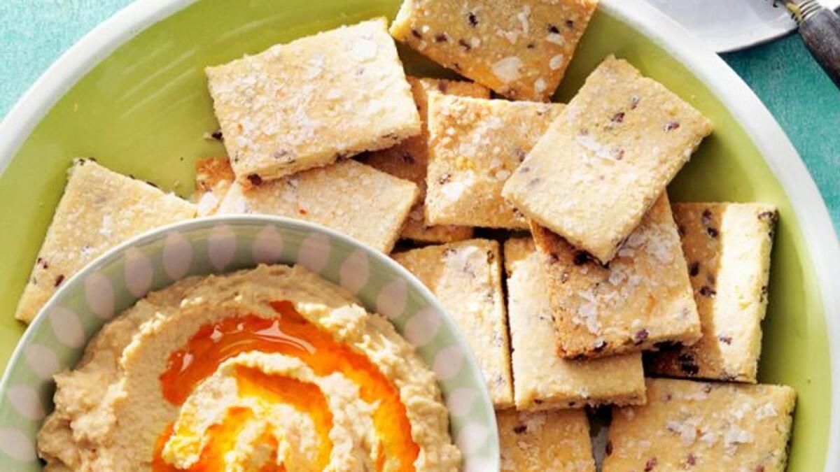 Kareler halinde kesin: Bir pizza kesici veya bıçak kullanarak kareleri veya köşegenleri istediğiniz boyutta kesin. Bir kürdan veya küçük bir çatal kullanarak, pişirme sırasında buharın kaçmasına izin vermek için her krakerin ortasını dürtün (böylece kabarmazlar). Üstüne biraz kaba deniz tuzu koyun.