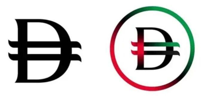 Öte yandan, dijital dirhem sembolü, gururu ve ulusal kimliği yansıtmak için BAE bayrağının renklerini kullanarak fiziksel para birimi sembolünü çevreleyen bir daireye sahiptir.