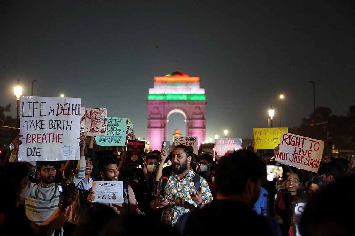 Delhi ve ulusal başkent bölgesi yıllardır her kış bu tür dumanlarla mücadele etse de, polisin onları toplamadan önce pankart tutan ve slogan atan her yaştan kalabalığın pazar günkü protestosu kıt bir olaydı.