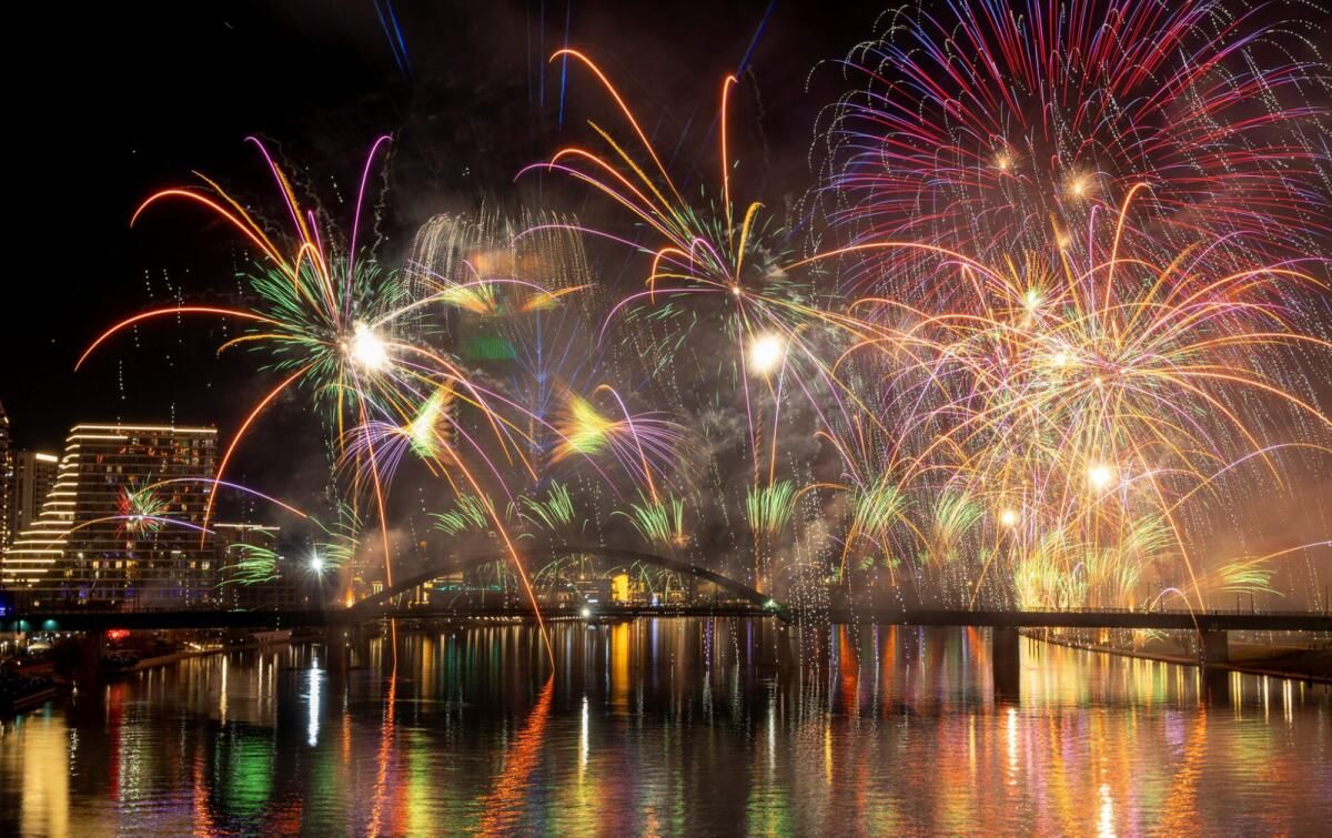1 Ocak 2024’te Sırbistan’ın Belgrad kentinde düzenlenen Yeni Yıl kutlamaları sırasında Belgrad Sahil projesi üzerinde havai fişekler patladı. Fotoğraf: Reuters