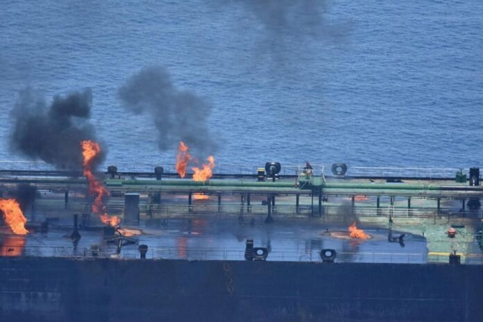 AB Kızıldeniz deniz misyonu Aspides Pazartesi günü X gazetesinde yayınlanan bir yazısında, Yemen Husilerinin petrol sızıntısı belirtisi olmayan saldırısının ardından Yunan bayraklı Sounion gemisinin 23 Ağustos’tan beri yanmakta olduğunu söyledi.